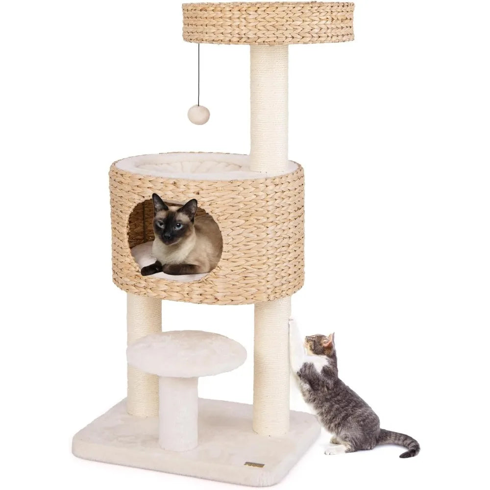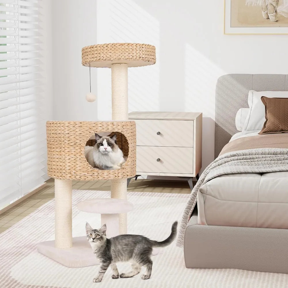 - Premium Sisal Scratching Post: Equipped with a sisal scratching post, this cat tree for indoor cats allows your cat to release their scratching instincts in a controlled and healthy manner. It also protects your furniture from unwanted damage.