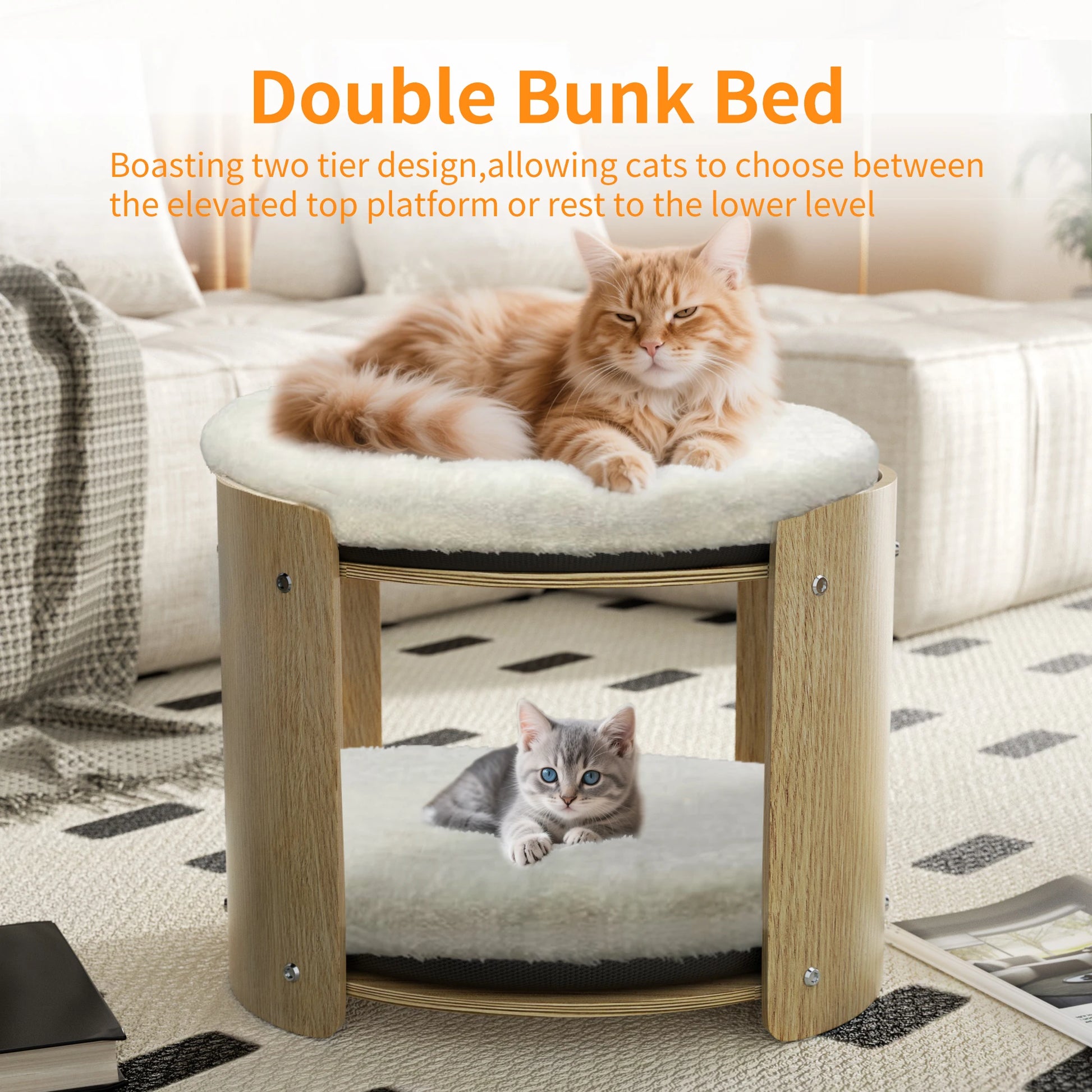 Elevated Cat Bed for Indoor Cats, 2-Tier Cute Small Cat Tree Tower with Natural Bamboo Frame, Removable Washable Soft Plush Mat