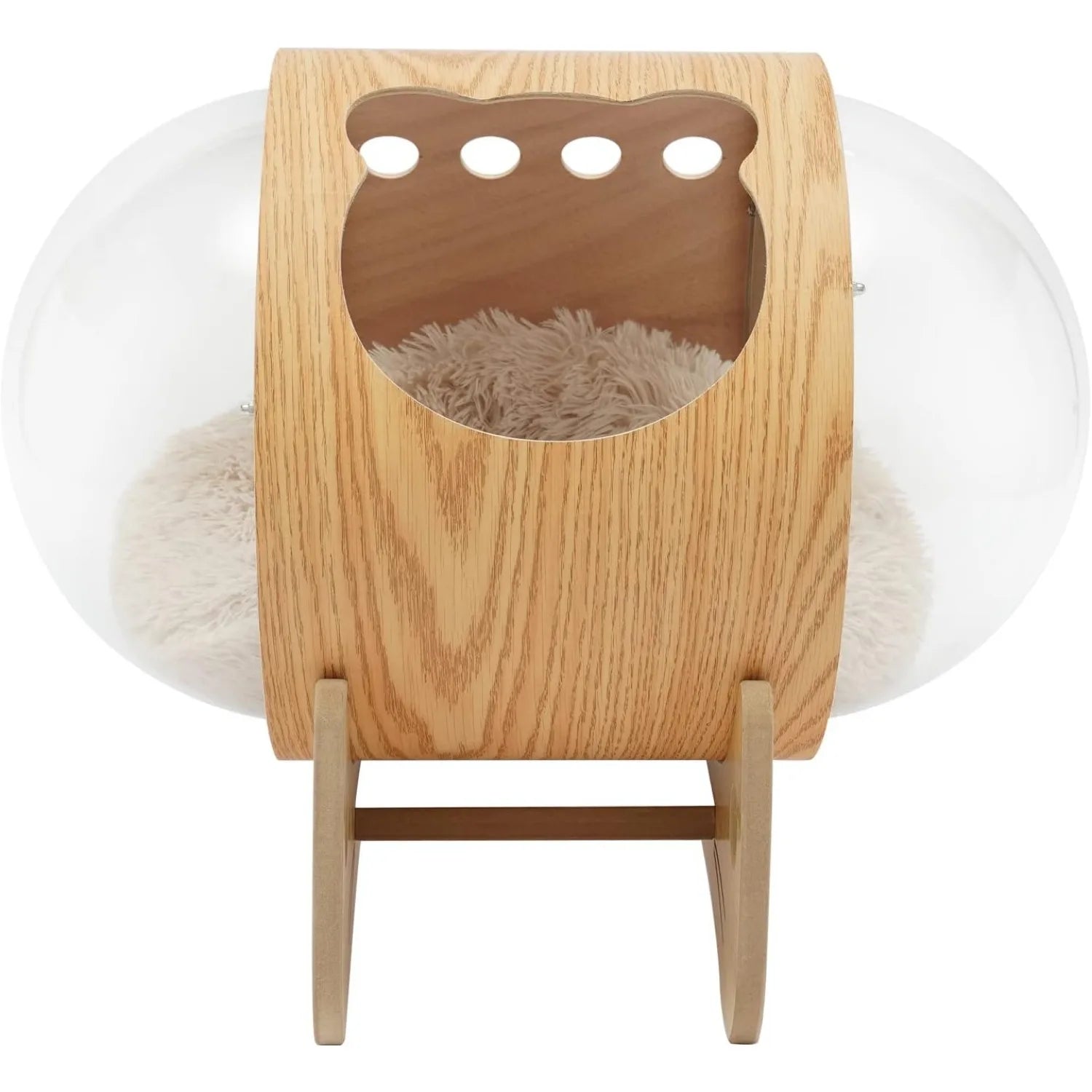Luxury Cat Pod Bed, Wooden Frame with Clear Acrylic Dome & 3.9" Thick Cushion, Supports 18.7lb Pets (Ventilation Holes)